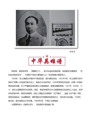 陈独秀,原名陈庆同 ,安徽怀宁人 ,新文化运动的倡导者、发起者和主要旗手,“五